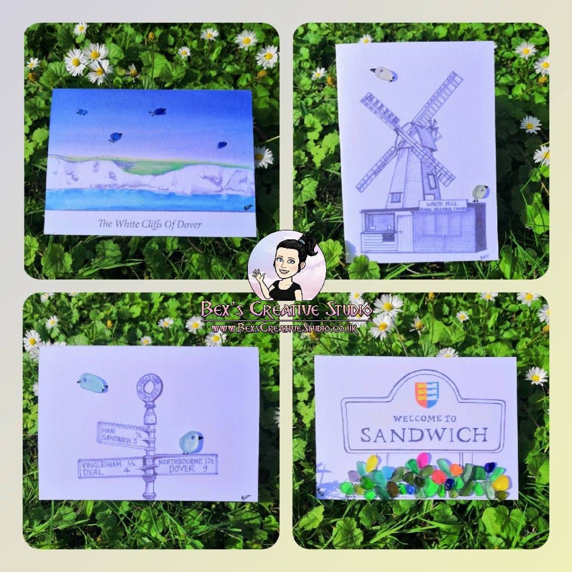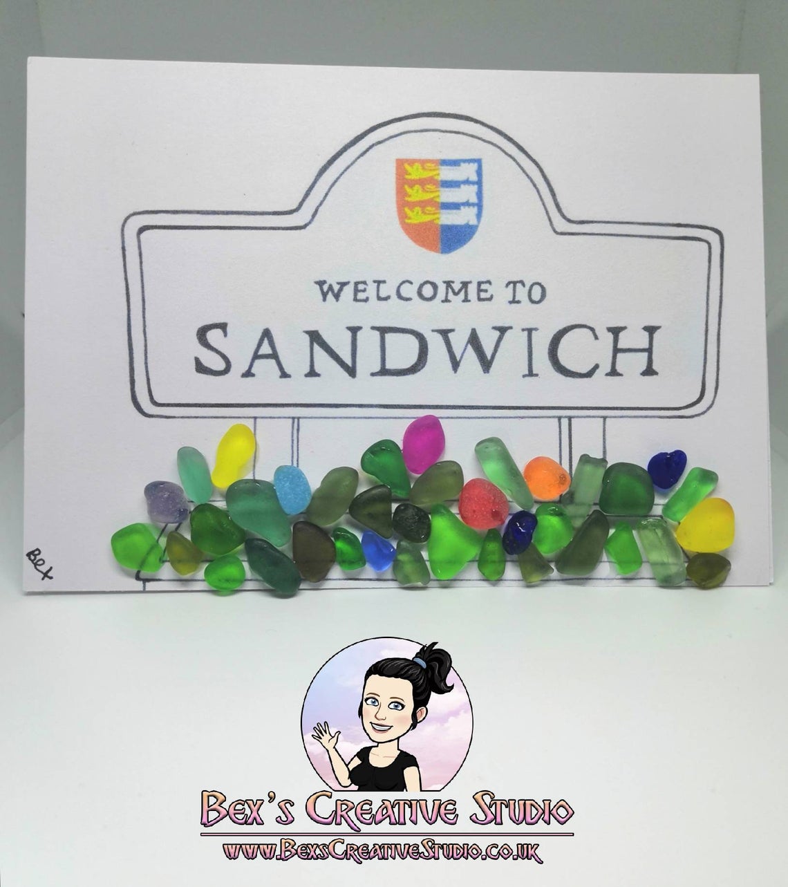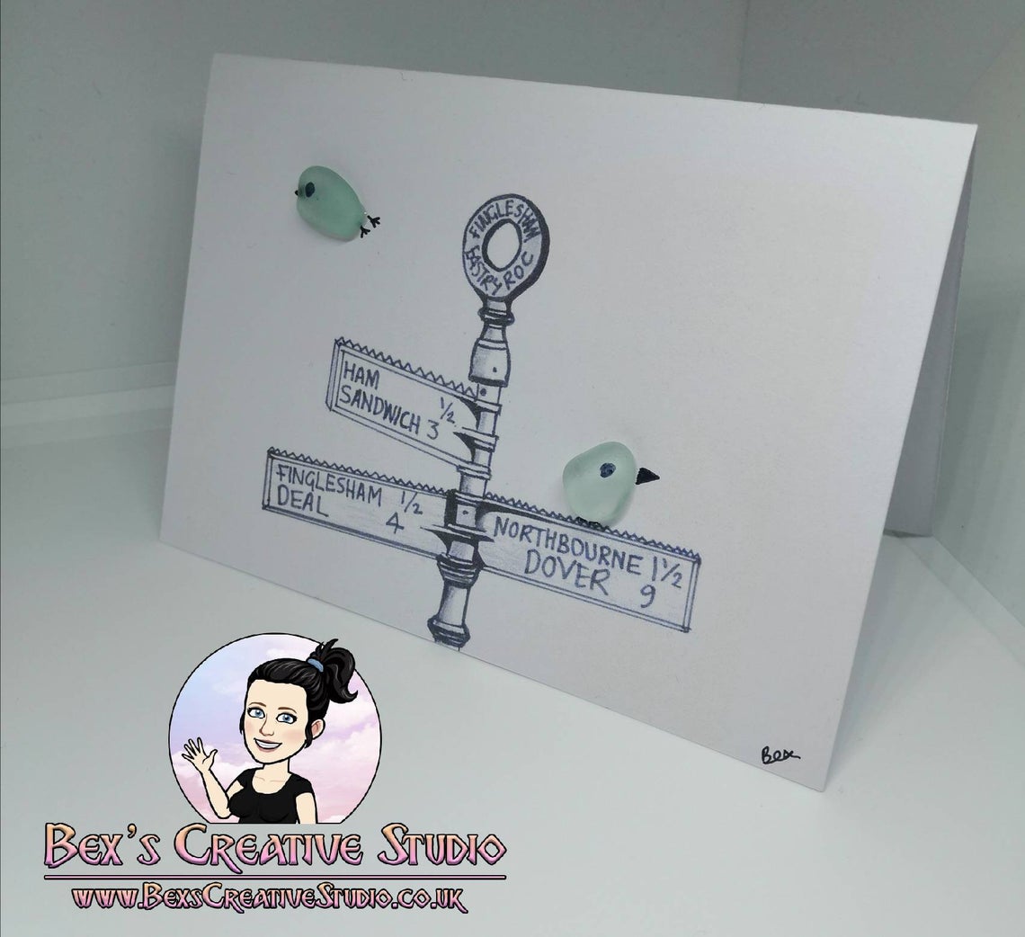 These are A6 (4"x6") sea glass greetings cards featuring local landmarks in South East Kent.